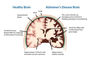 Alzheimer’s disease is a progressive neurologic disorder that causes the brain to shrink (atrophy) and brain cells to die. Alzheimer’s disease is the most common cause of dementia — a continuous decline in thinking, behavioral and social skills that affects a person’s ability to function independently.