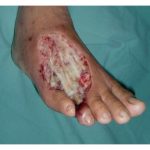 This is a typical image of a leg infected with gangrene