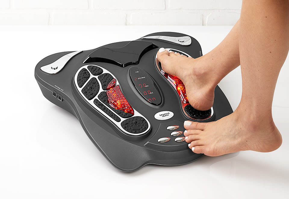 Foot massager with infrared light helps cells regenerate or repair themselves. Infrared light also improves the circulation of oxygen-rich blood in the body, promoting faster healing of deep tissues and relieving pain.